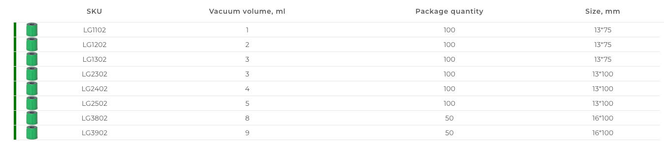 The interior of the tube wall is coated with dry heparin (12-30 IU